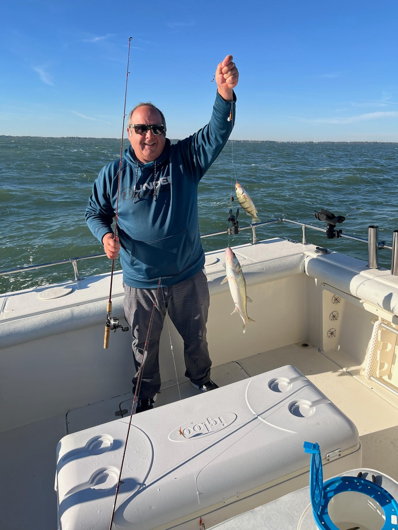 Lake Erie walleye are the stuff of legend, and for good reason. These fish average 2-4 pounds with plenty of bigger ones mixed in, especially during the peak May through July season when this trip runs. What makes Erie walleye special is their aggressive feeding behavior and the sheer numbers present in these waters. They relate strongly to the lake's extensive reef systems and drop-offs, often schooling in large groups that can provide fast and furious action when you find them. The best part about Erie walleye is their willingness to bite throughout the day – while early morning is typically strongest, these fish will often feed actively right through mid-day, especially when weather conditions are stable. They're also excellent table fare, with firm white fillets that are perfect for the fish fry. During peak season, it's not uncommon to catch dozens of keeper walleye, and the lake's generous limits mean you can take home a cooler full of fresh fish.